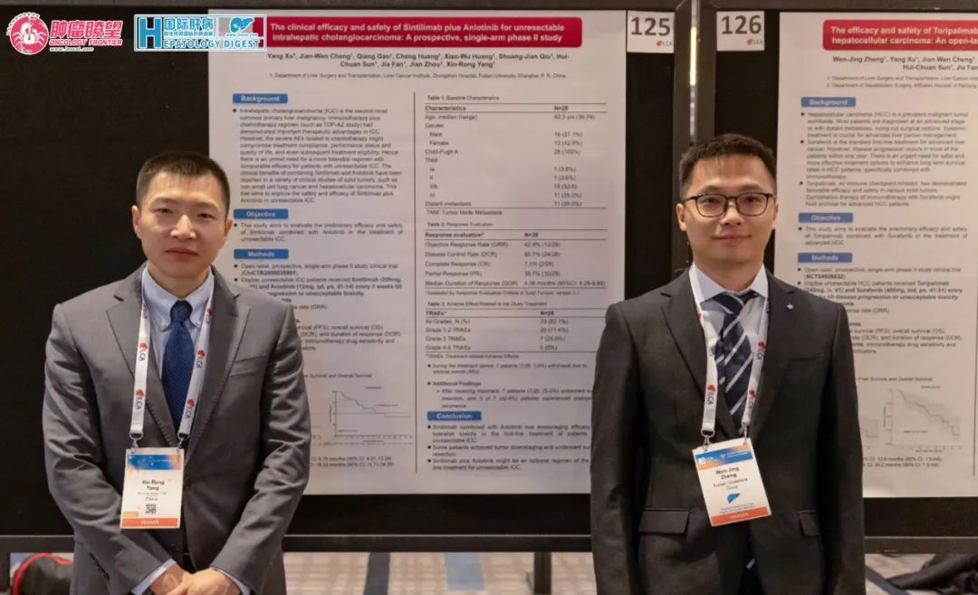 杨欣荣教授:在本次ILCA年会上,我们团队荣幸地呈现了两项重要的研究成果。一项研究(大会摘要号:P-126)聚焦于索拉非尼与特瑞普利单抗(一种PD-1抗体)的联合应用,在肝细胞肝癌的II期临床试验中展现了显著疗效。针对不可切除的肝癌患者,特别是那些处于一线治疗阶段的患者,我们的治疗方案实现了50%的治疗反应率,更为振奋人心的是,约有20%的患者在治疗后,其原本不可切除的肿瘤转变为可切除状态,为后续治疗开辟了新的可能。