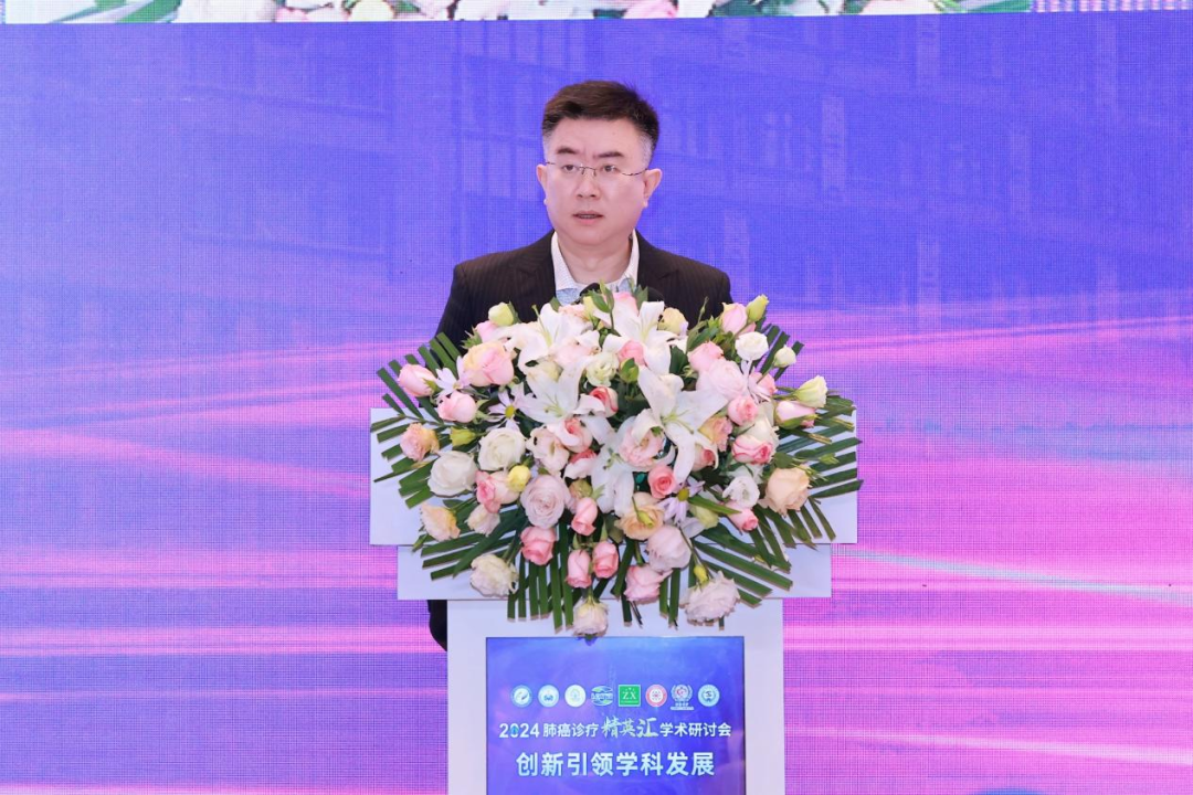 潘军华书记首先对与会专家学者的到来表示欢迎。潘书记表示近年随着健康中国战略的深入实施,社会各界对健康需求的关注度也在不断提升。对于胸部肿瘤来说,可谓机遇与挑战并存。如何更好的应对人民日益增长的健康需求及学科高质量发展的需求,是首都医科大学附属北京胸科医院与全国同道的共同任务。“2024年肺癌诊疗精英汇”学术研讨会的成功举办,为全国同仁提供了一个良好的学术交流平台,领域内专家学者立足胸部肿瘤的临床实践现状,围绕领域基础研究、临床实践、疾病管理、人才培养、多学科合作探索最新进展展开深入交流与讨论,将会对推动胸部肿瘤的学科发展起到深远的意义。期待通过本届大会的顺利召开,可以使全国领域内专家学者紧密合作,为胸部肿瘤领域多学科交叉融合未来发展提供参考及指导,共同推动高学科高质量发展,预祝大会圆满成功。