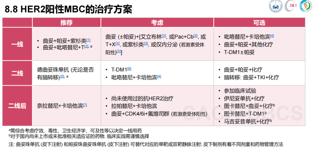 张剑教授:事实上,对于HER2阳性脑转移的乳腺癌患者,既往我们的治疗方式主要局限于TKI类药物的探索。乳腺癌领域的很多专家都在这一领域进行了探索,包括闫敏教授开展的PERMEATE研究等。但是ADC药物出现后,相关研究结果提示,无论是稳定性脑转移和还是活动性脑转移患者,德曲妥珠单抗治疗都产生了不错的疗效,今年ESMO大会上公布的DB-12的临床研究数据也进一步证实了德曲妥珠单抗的疗效。因此,在新版小红书HER2阳性晚期乳腺癌患者的治疗原则当中也提出,对于脑转移的患者,德曲妥珠单抗和TKI类药物可优先选择。治疗原则中第三点也修改为:抗HER2靶向药物的生物类似药、皮下制剂,可按照国内获批的说明书上适应证进行应用。