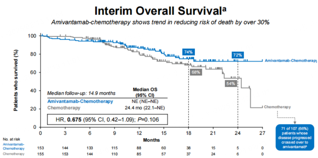 PAPILLON研究是一项全球多中心、随机对照III期临床研究,旨在评估埃万妥单抗联合化疗(ACP方案)与单纯化疗在EGFR ex20ins突变晚期或转移性NSCLC患者一线治疗中的疗效和安全性[6]。主要终点是根据盲态独立中心评估(BICR)评估的无疾病进展生存期(PFS),关键次要终点包括客观缓解率(ORR)、总生存期(OS)及中位缓解持续时间(DoR)等。