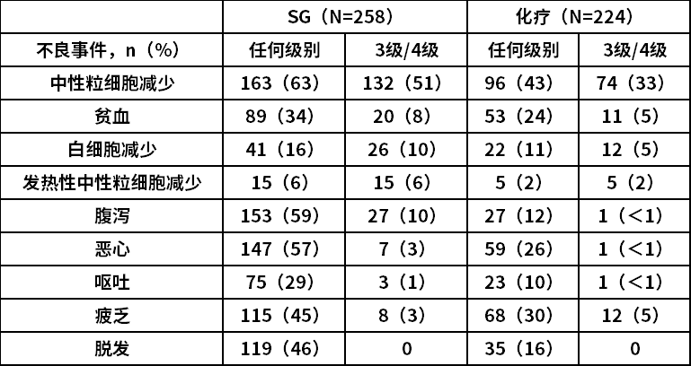 ASCENT研究中SG组与化疗组的安全性表现