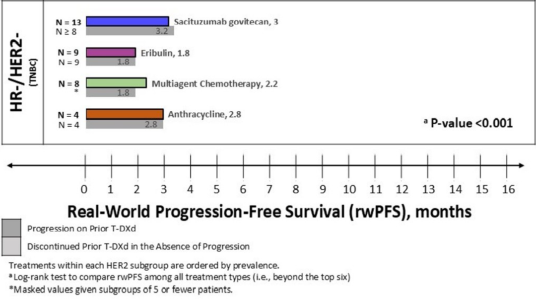图5.美国真实世界中不同亚型乳腺癌T-DXd后续治疗的rwPFS