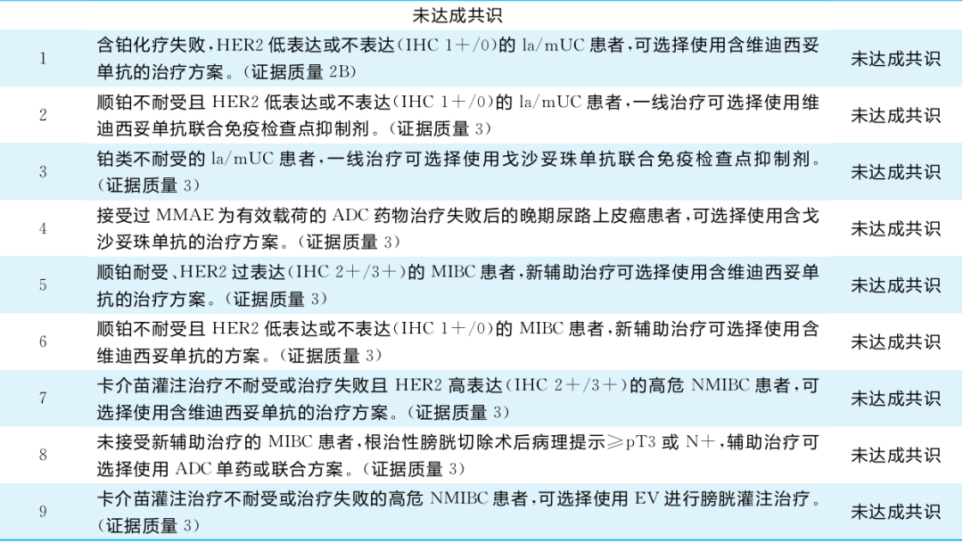 表2 2025年ADC在尿路上皮癌中应用共识讨论会投票结果