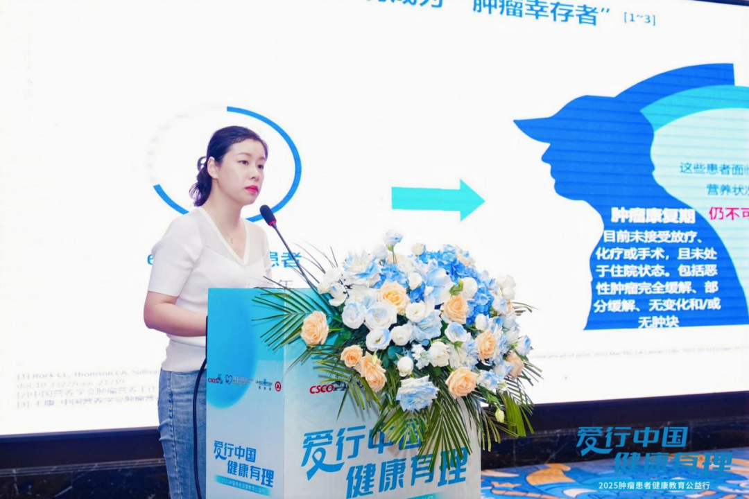 杭州市肿瘤医院中西医结合肿瘤科吴贞教授以“肿瘤康复患者的营养治疗”为主题,讲解了营养治疗的全方位方法和科普,强调了营养饮食对肿瘤患者健康的重要性。