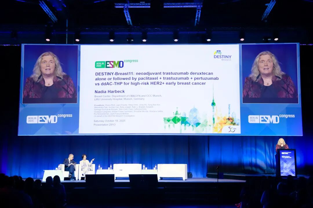 编者按:近年来,HER2阳性乳腺癌的治疗范式不断突破,一方面是新辅助治疗理念在HER2阳性乳腺癌领域得到广泛践行;另一方面是抗HER2治疗药物不断升级优化,从大分子单抗到小分子TKI,再到新型HER2抗体偶联药物(ADC)德曲妥珠单抗(Trastuzumab deruxtecan,T-DXd)。DESTINY-Breast(DB)系列研究中,T-DXd在晚期乳腺癌领域持续拓展抗HER2治疗边界,并向一线治疗前移。在2025年ESMO大会上,T-DXd用于HER2乳腺癌新辅助治疗的DB-11研究取得阳性结果,标志着乳腺癌新辅助治疗将迈入“ADC时代”。《肿瘤瞭望》特邀DB-11研究中国Leading PI、复旦大学附属肿瘤医院吴炅教授解读DB-11研究,一起走进T-DXd所奏响的HER2阳性乳腺癌治愈“新”强音。