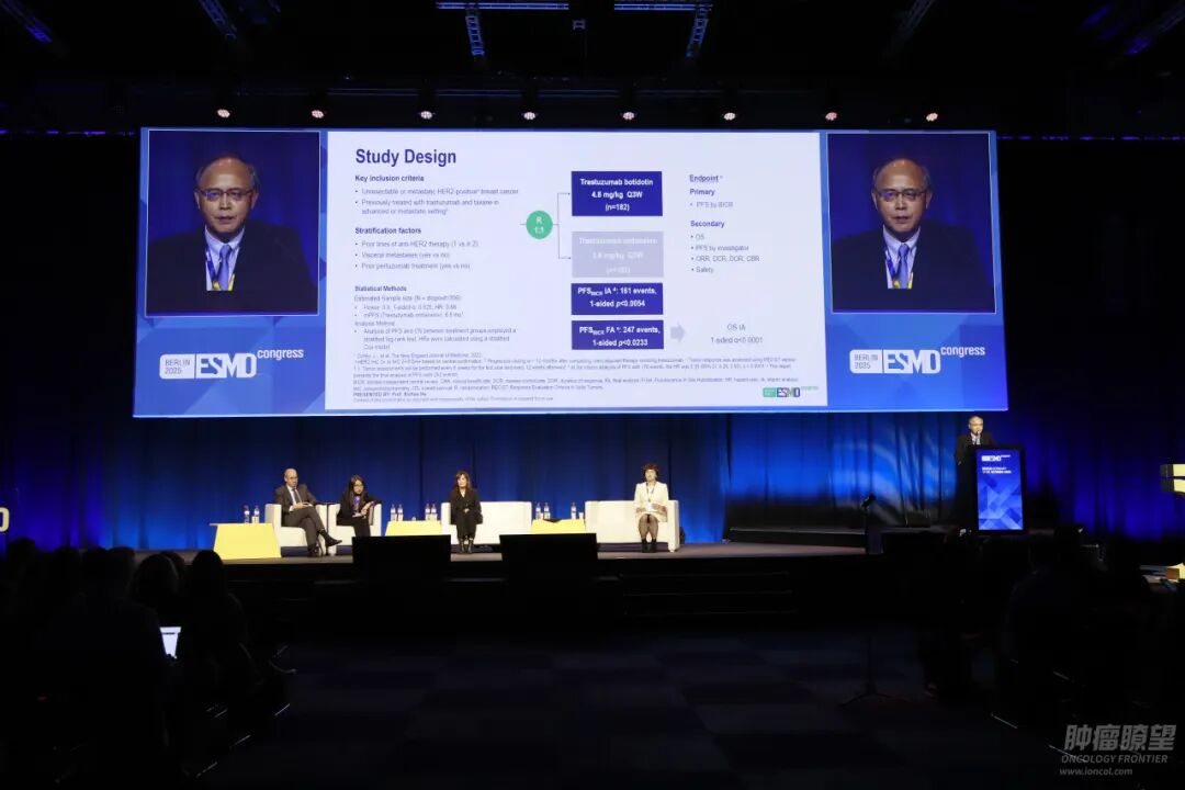 编者按:抗体偶联药物(ADC)凭借“精准靶向+强效杀伤”的双重优势,已成为HER2阳性晚期乳腺癌二线及以上治疗的重要策略,为无数患者点亮生命新希望。然而,现有ADC仍存在疗效有限或耐受性不佳等瓶颈,临床亟需更优方案。在2025年ESMO大会上,一项里程碑式研究以LBA形式重磅亮相——第二项头对头对比新型ADC博度曲妥珠单抗(A166)与恩美曲妥珠单抗(T-DM1)的Ⅲ期临床试验成功取得阳性结果,为HER2阳性晚期乳腺癌二线及以上治疗提供了更优循证选择。《肿瘤瞭望》现场特邀研究Leading PI、复旦大学附属肿瘤医院胡夕春教授,深入解读这项突破性研究的核心结果,剖析A166在临床应用中的价值与潜力,为中国HER2阳性晚期乳腺癌诊疗格局的优化提供权威指引。
