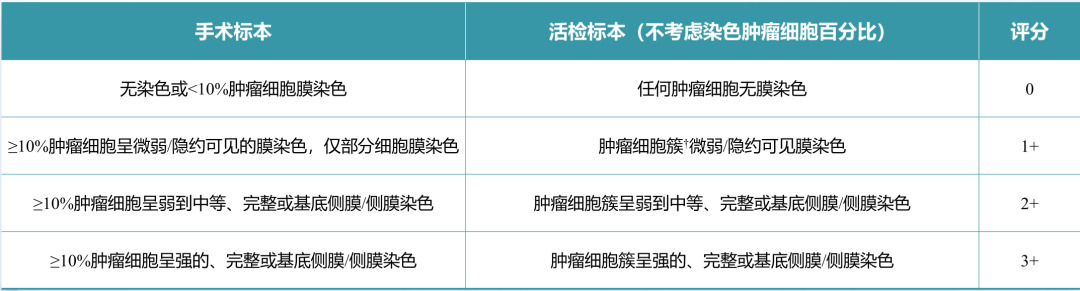 泛实体瘤HER2 IHC判读评分标准。注:†肿瘤细胞簇定义为≥5个成簇细胞