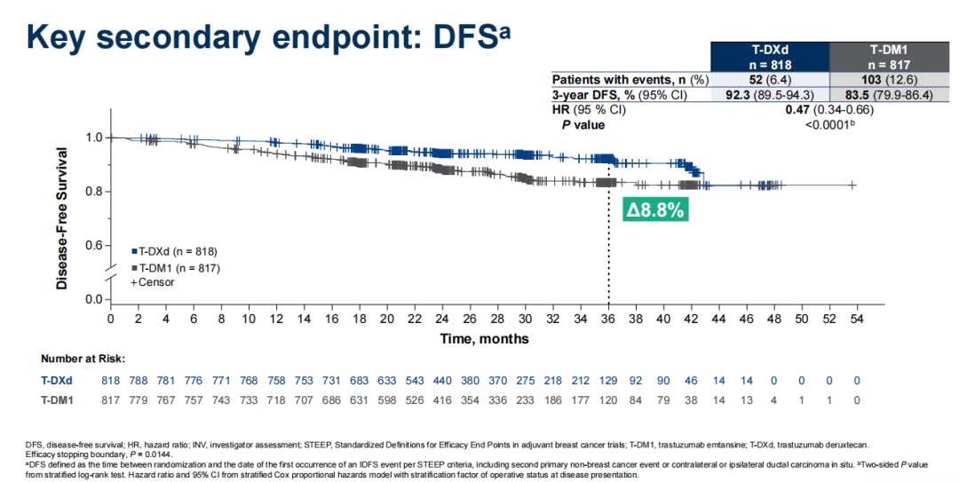 △DESTINY-Breast05研究患者主要终点IDFS和关键次要终点DFS