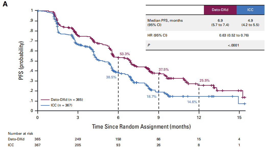△TROPION-Breast01研究全球人群中由BICR评估的PFS情况