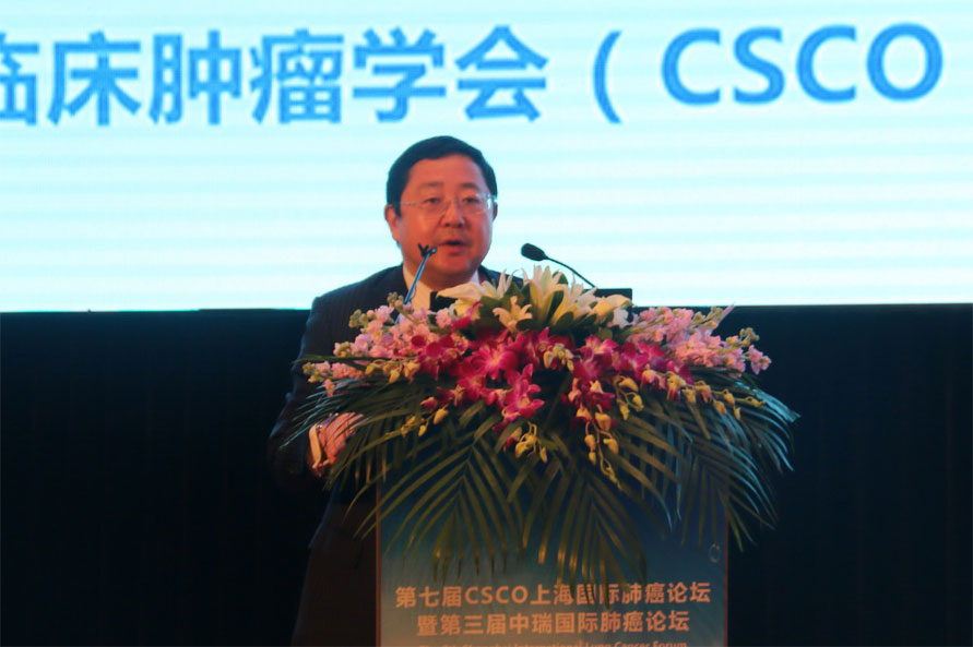 随后,广东省人民医院院长、中国临床肿瘤学会现任理事长吴一龙教授代表CSCO感谢主办方的邀请并做了发言。吴教授表示CSCO已经成功举办了一系列肺癌学术论坛,上海国际肺癌论坛就是其中之一,今后CSCO会继续给予上海国际肺癌论坛学术支持,也呼吁更多的肺癌同道参与会议的交流与讨论。