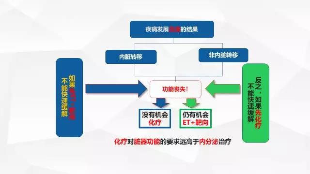 从ABC2对原发性内分泌耐药的定义来看,疾病发展迅速是它们的共性特征。而化疗与内分泌治疗比其有2个特点:1)起效比内分泌治疗要快;2)对重要脏器功能(例如肝功能)的要求远高于内分泌治疗。