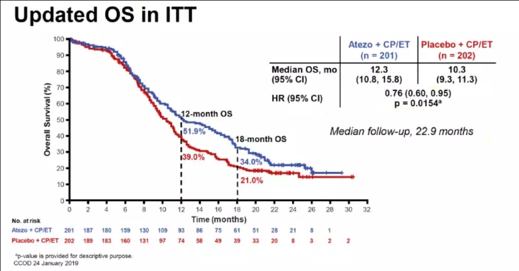 KEYNOTE-024和KEYNOTE-042等免疫治疗研究显示,对于PD-L1表达≥50%或≥1%的选择性晚期NSCLC患者(EGFR野生型、ALK阴性),一线单药免疫治疗较化疗明显延长OS,这是一个突破性的进展。PD-L1抑制剂阿特珠单抗单药治疗PD-L1高表达NSCLC患者的中位OS优于化疗。此外,对于驱动基因阴性NSCLC,免疫治疗联合化疗的疗效明显优于单纯的化疗,可延长生存,这也是一项突破性进展。