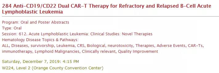 编者按:第61届美国血液学会(ASH)年会将于2019年12月7~10日在美国奥兰多盛大召开,ASH年会为血液领域顶级的学会盛宴,吸引了来自世界各国的著名专家及学者,旨在共同探讨血液学重磅的研究进展,推动血液疾病的诊疗水平提升。值得强调的是,2019年ASH会议上来自中国的研究明显增加,得到了广泛关注,在CAR-T治疗方面,中国多项Oral研究入选大会,《肿瘤瞭望》特对其遴选及编译,以供读者参考。