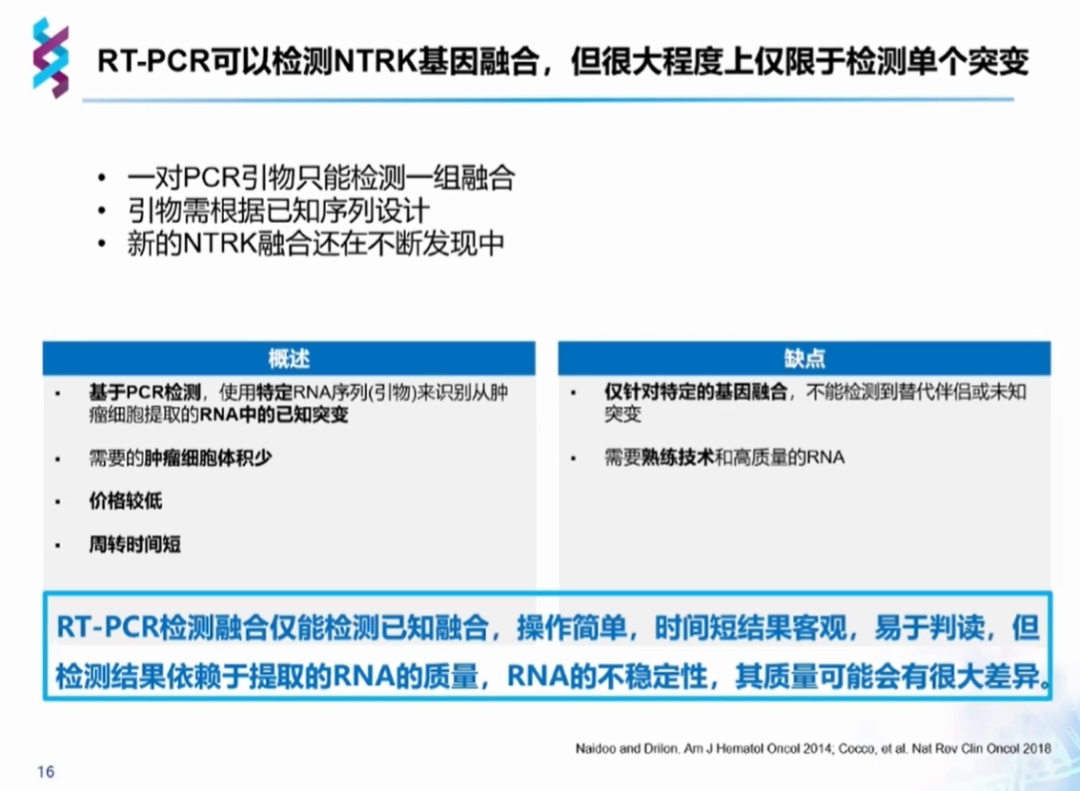 韩博教授:目前针对NTRK融合基因更倾向于RNA检测。也有观点认为结合DNA、RNA双重检测会较单纯的DNA或RNA检测更高效,其数据的准确性,NTRK阳性检出率更高。?
