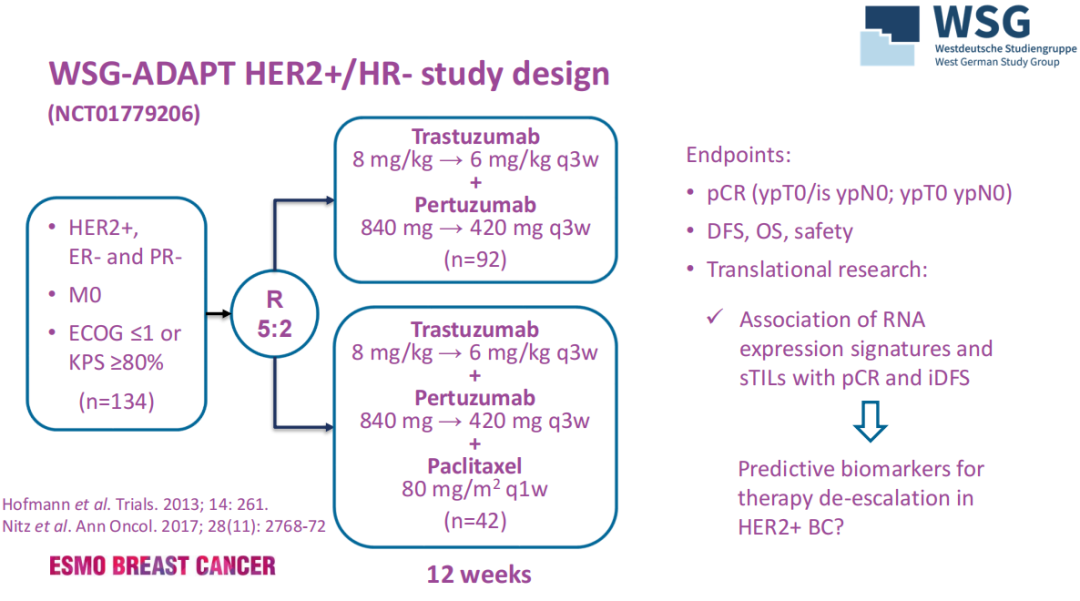 本次ESMO大会公布了针对HER2+/HR-亚型妥妥双靶+/-化疗的pCR人群的生物标记物和免疫特征的研究结果。