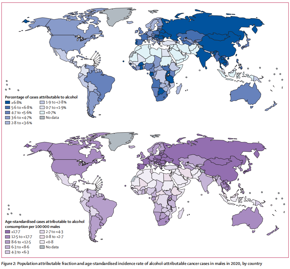 Rumgay, Harriet et al. “Global burden of cancer in 2020 attributable to alcohol consumption: a population-based study.” The Lancet. Oncology, S1470-2045(21)00279-5. 13 Jul. 2021, doi:10.1016/S1470-2045(21)00279-5