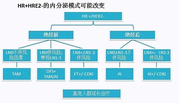 1、应根据临床病理特征、结合复发风险评分(包括基因检测)及治疗的反应性(敏感性)来决定内分泌治疗的决策。
