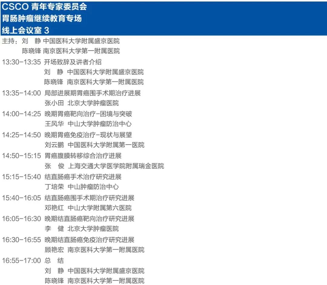 该会场邀请多个优秀青年专家委员会学者分享胃肠肿瘤相关治疗进展。