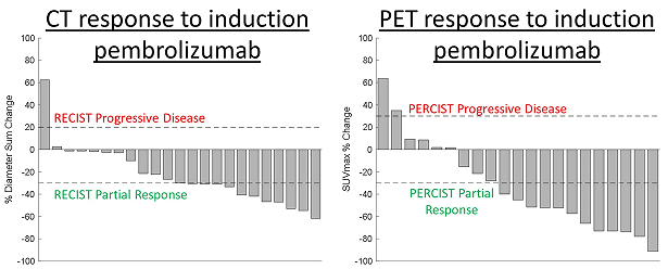图6.帕博利珠单抗诱导后CT和PET应答情况