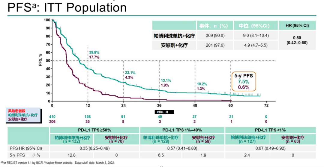 图3.Keynote189研究5年PFS率。