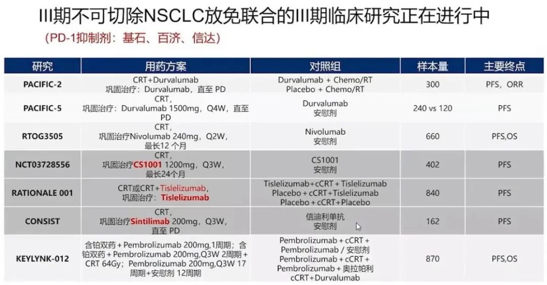 同步放化疗后免疫巩固治疗:PACIFIC成为一面旗帜