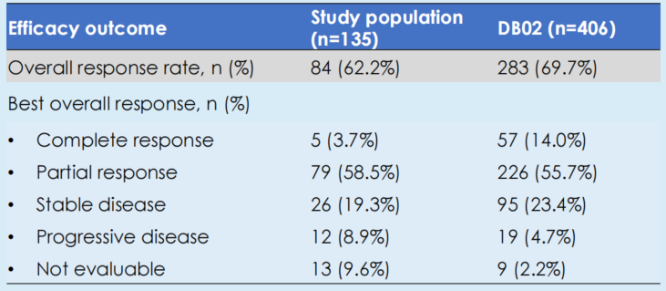 DB02研究中,23.5%的患者减少了T-DXd剂量,而在这项RWS数据集中,需要减少T-DXd剂量的患者比例更高(37%)(表3)。