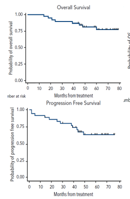 此外,2018年发表于《BLOOD》杂志上的一项研究公布了来那度胺+利妥昔单抗一线治疗MCL的5年随访结果,结果显示:1)该联合方案的ORR达到了92%, CR为64%. 2)中位随访64个月, 3年PFS及OS分别高达80%和90% ; 5年PFS及OS则分别达到了64%和77%,详见下图。